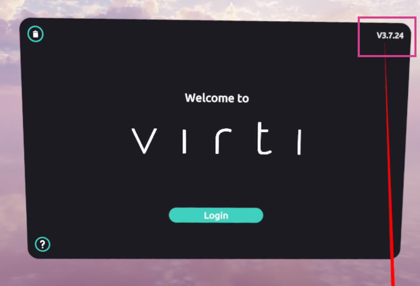 First, you can launch the application by selecting the Virti Application Icon. Once the application loads, you can see the version number on the top right of the login screen: