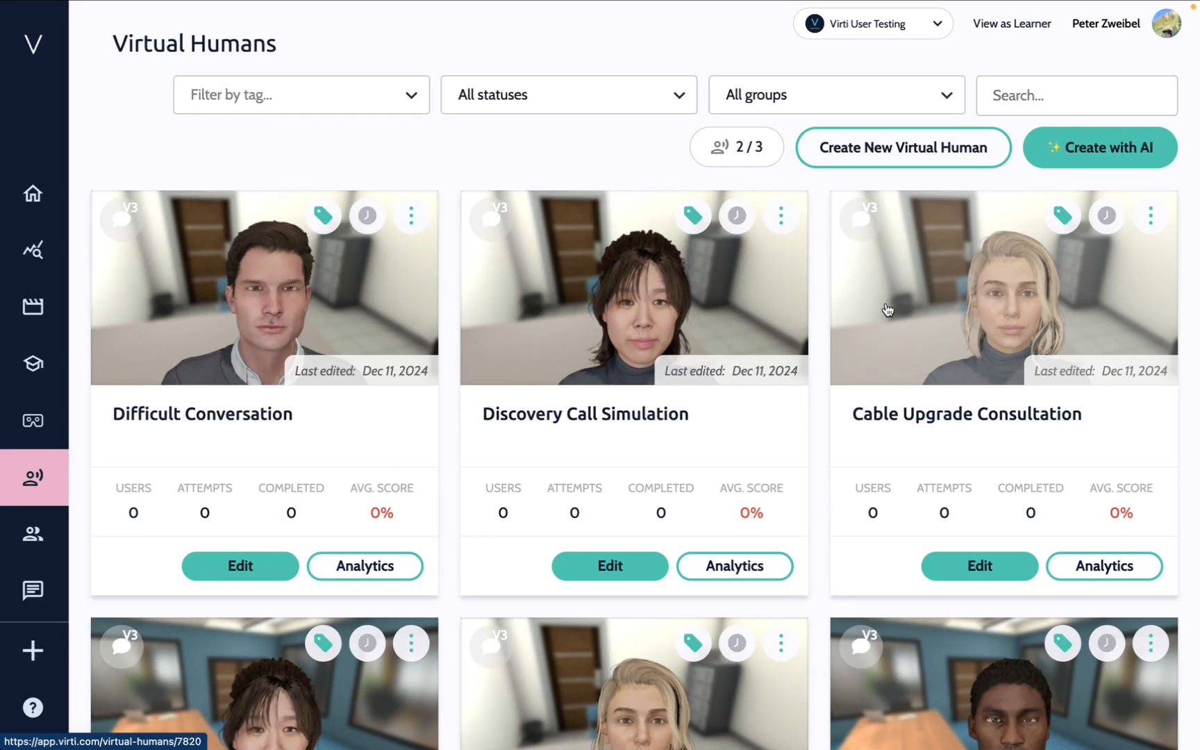 Next, click on Create with AI to start the process of creating a new Virtual Human.