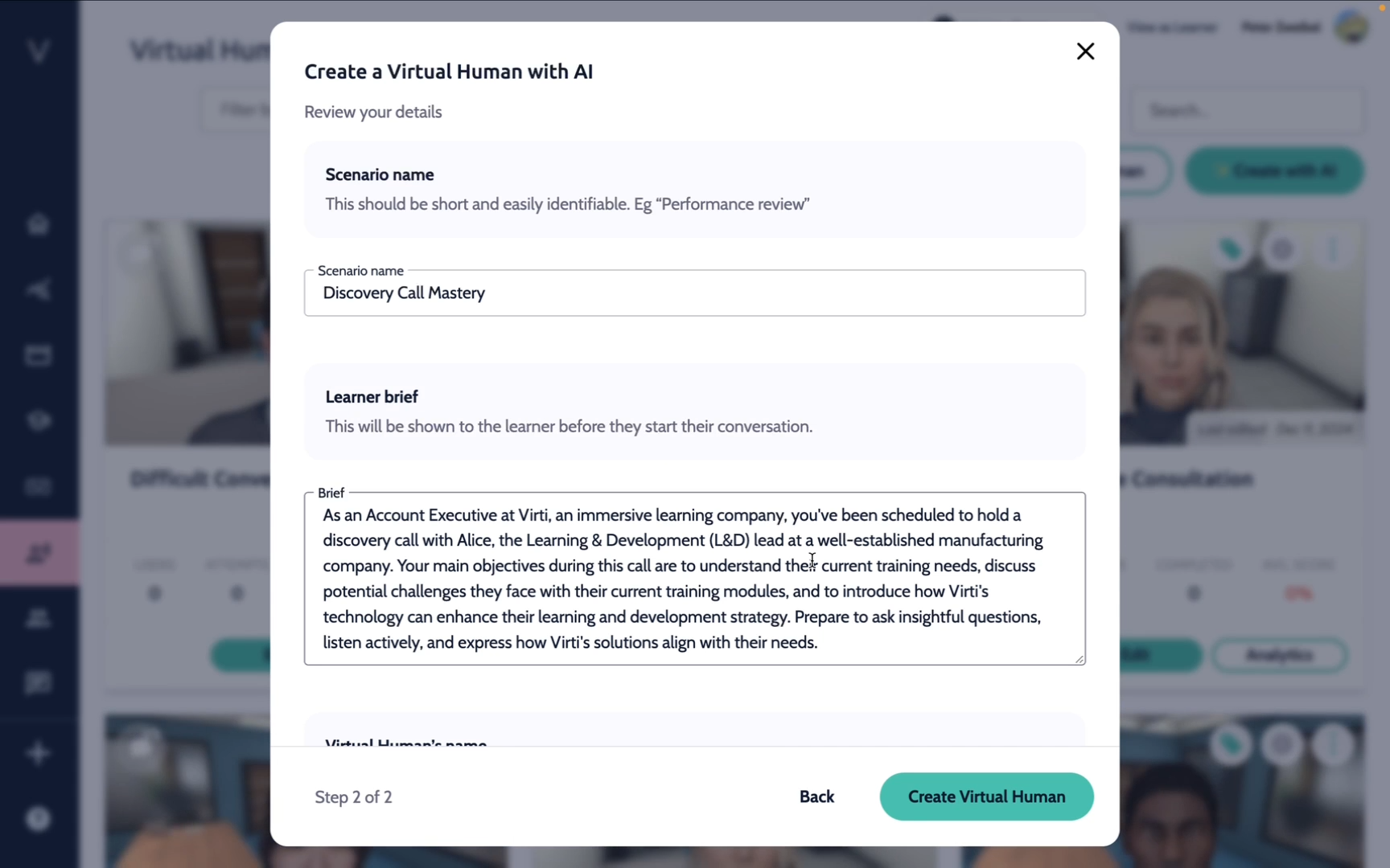 When you are happy with the Virtual Human, click Create Virtual Human.