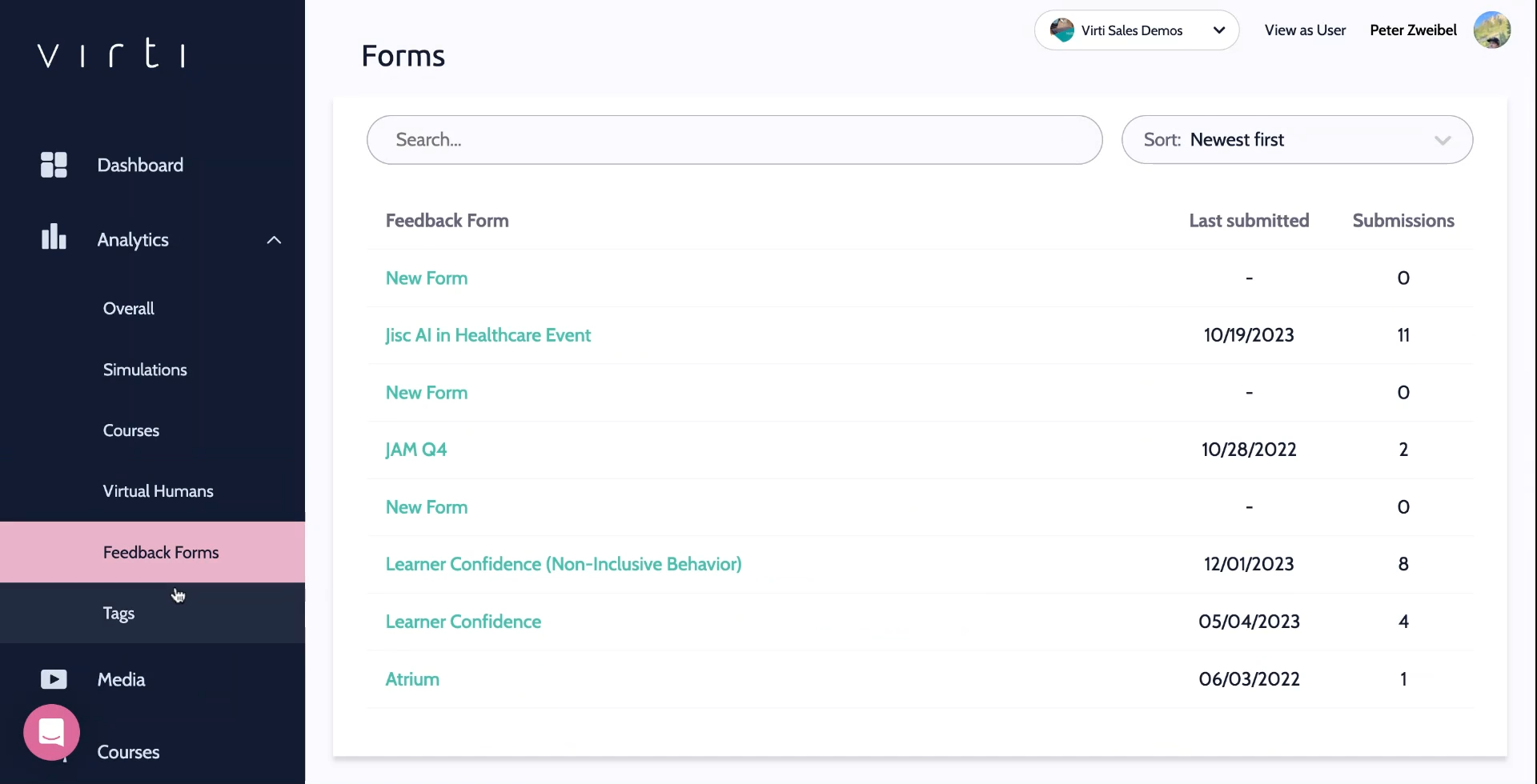 Click Feedback Forms to view all of the feedback data you have collected from your learners.