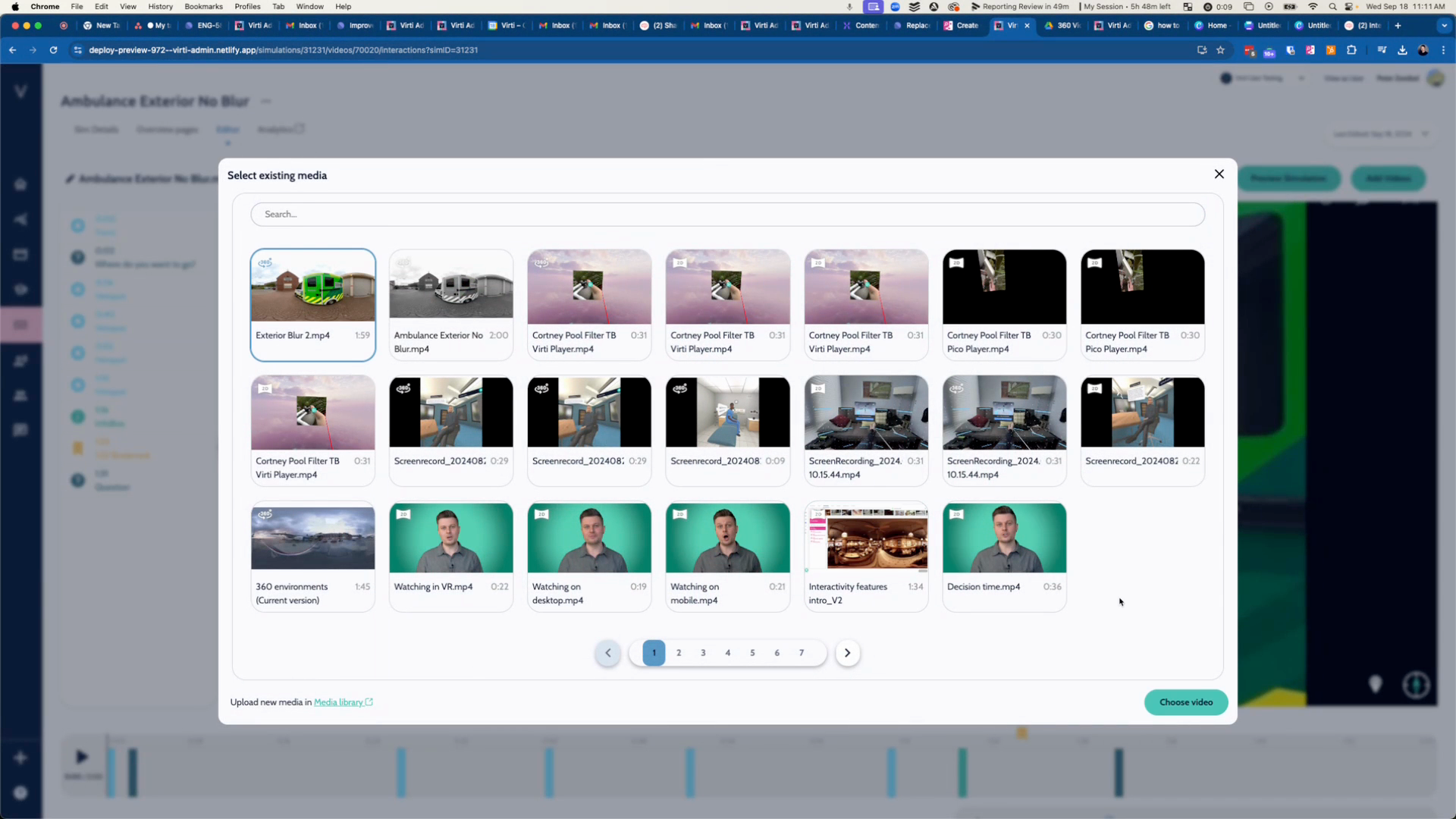 Step 3: Select the new media file from your media library. In this case "Exterior Blur 2.mp4", and hit Choose Video