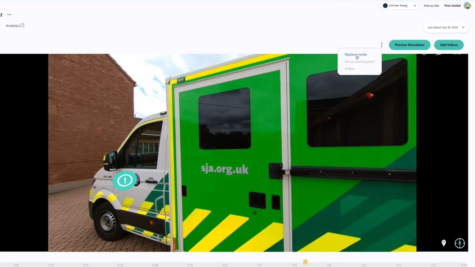 So you've created your simulation, and added all of your hotspots, questions, and branching storylines and are doing your final preview before publishing, and wait a minute… you forgot to remove the tripod! Don't worry, you don't need to start over. All you need to do is go back to your editing software of choice, make the necessary change, upload the new media, and use the "replace media" feature to add the latest version of your video into your simulation.