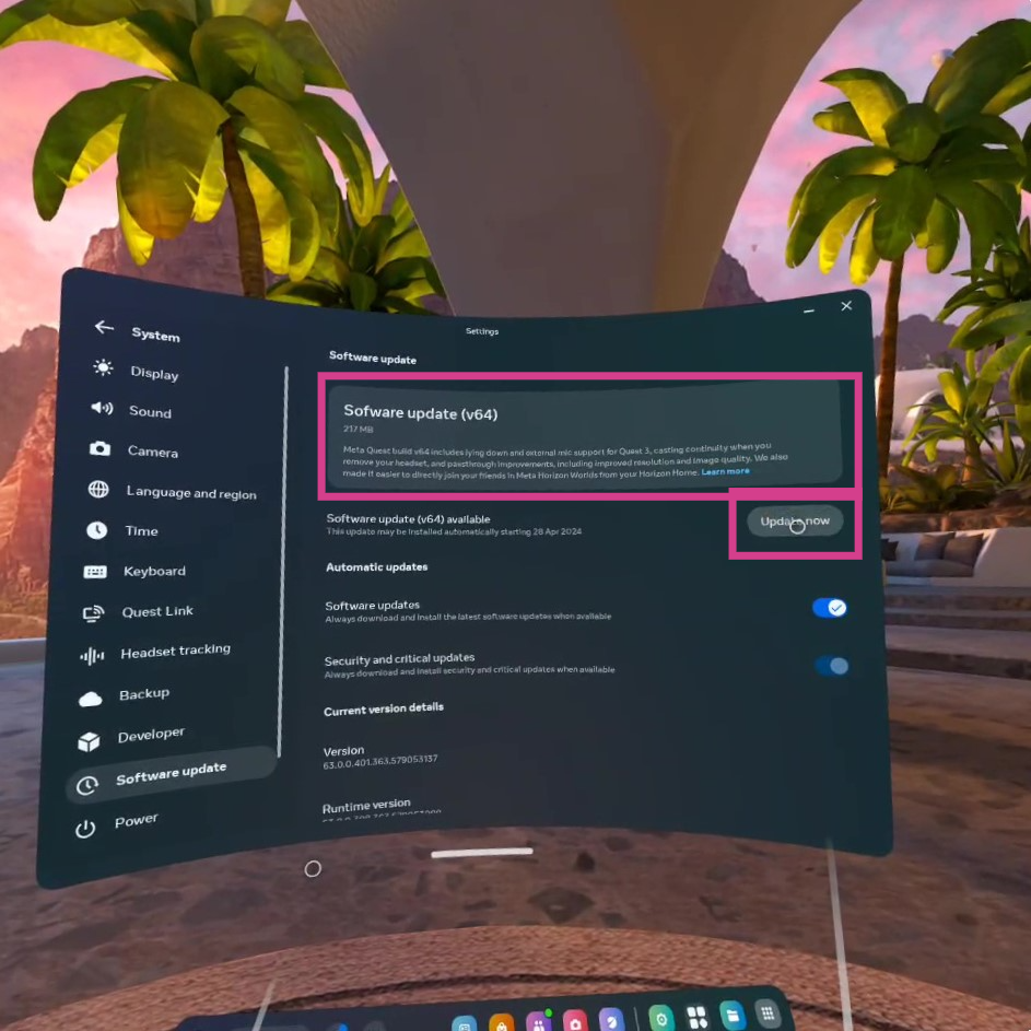 If you'd like to update your OS on a Meta/Quest VR device, follow these steps: