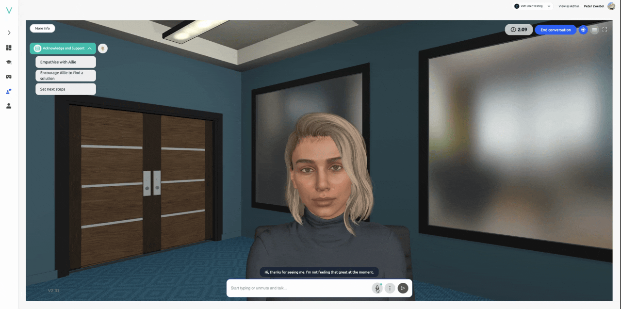 Important: Your chosen setting will be saved and used for every Virtual Human you interact with until you change the setting.