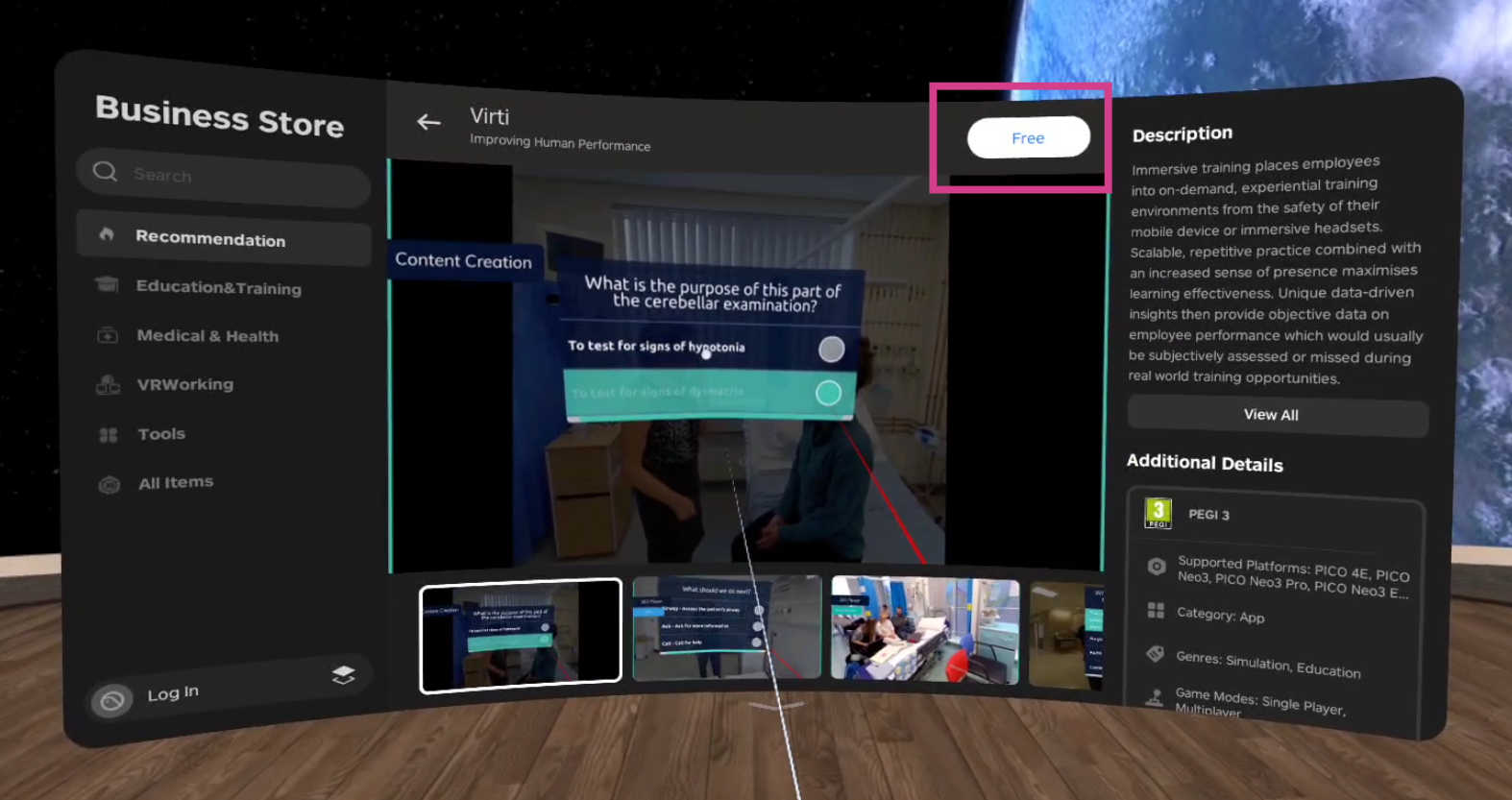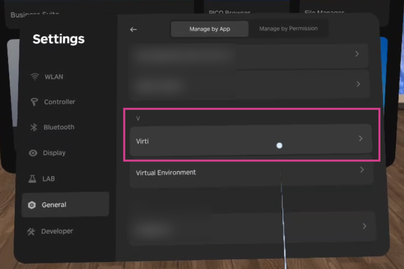 Now, Select on the Virti application. At the top, you will see one of three options on the top of the panel: