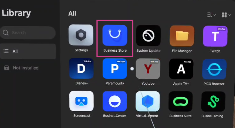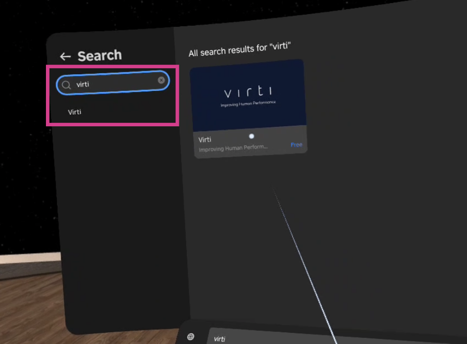 Once selected, search for Virti in the search bar at the top left, and the application will appear in the list.