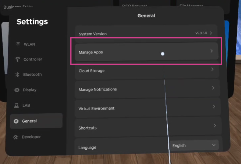 Once selected, select Manage Apps.